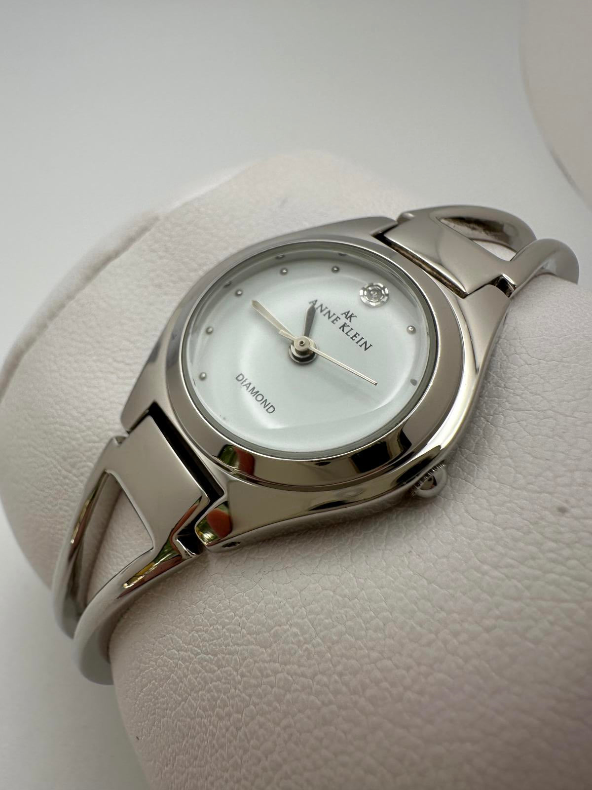 Elegant Anne Klein women’s watch with a minimalist silver-tone bracelet and genuine diamond accent at 12 o’clock. A timeless piece that combines everyday wearability with classic style.