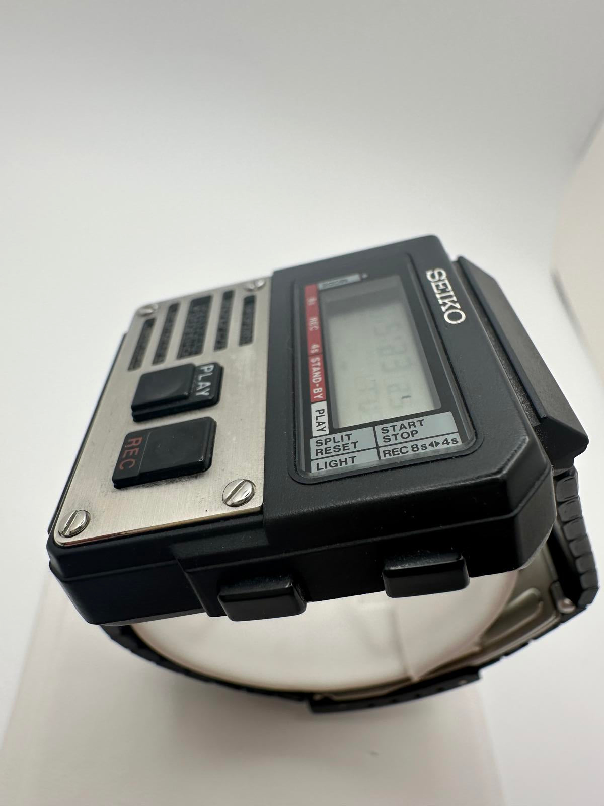 Fully functional with new battery installed. PLAY and REC buttons work; with sound output; digital display crisp and stable. Original Seiko strap and clasp included.