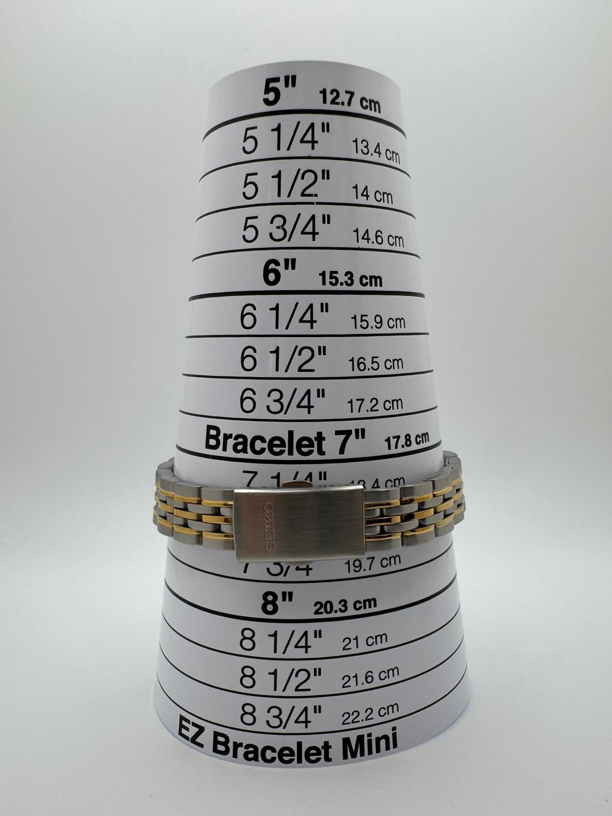 Bracelet: Two-tone stainless steel (silver & gold) with signed Seiko clasp