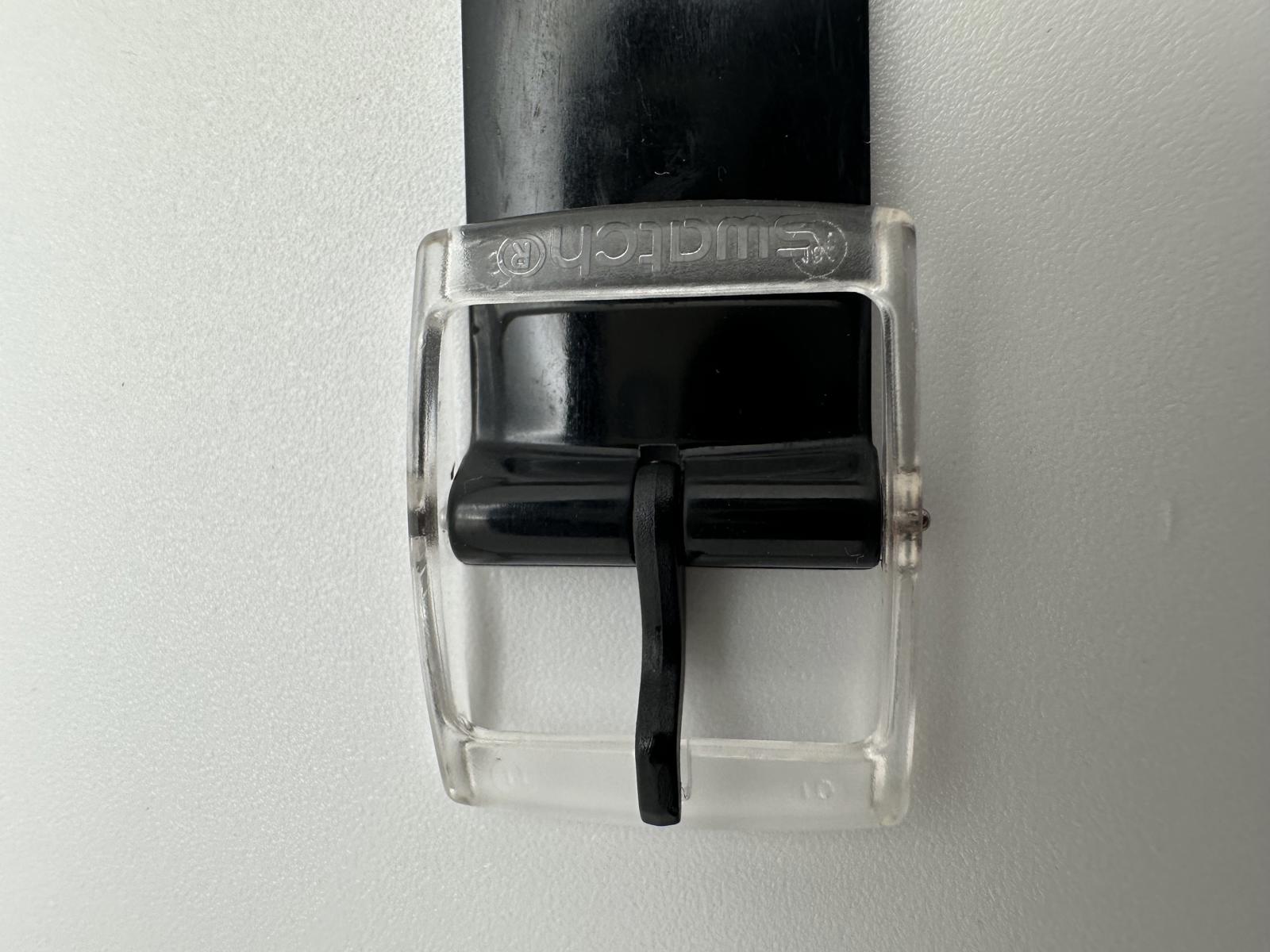 A fresh battery was installed and the watch is running well. Crystal and case show scratches from normal wear, and the strap shows typical Swatch aging, but everything functions and wears comfortably. A great everyday Swatch and an ideal starter for collectors.