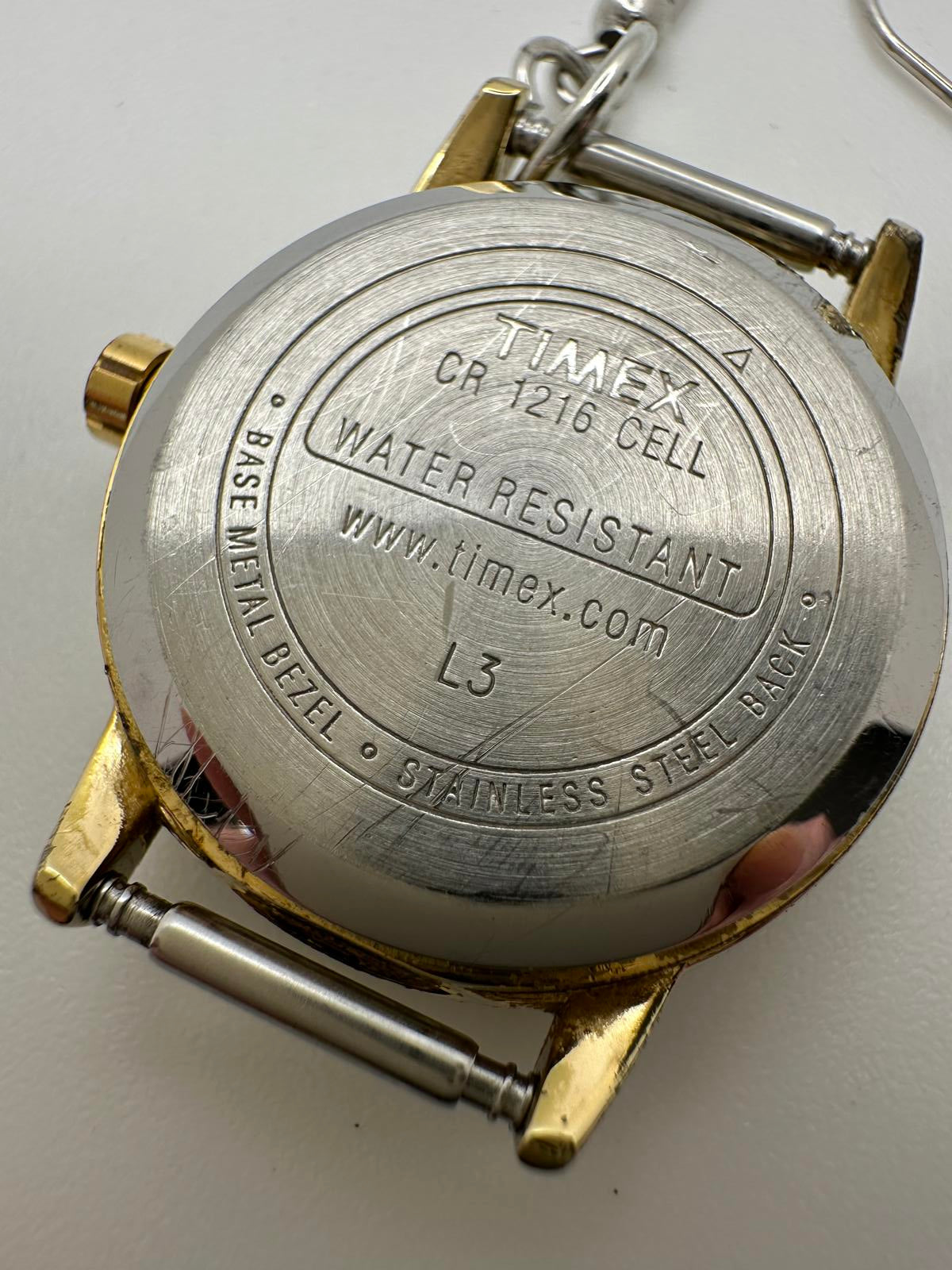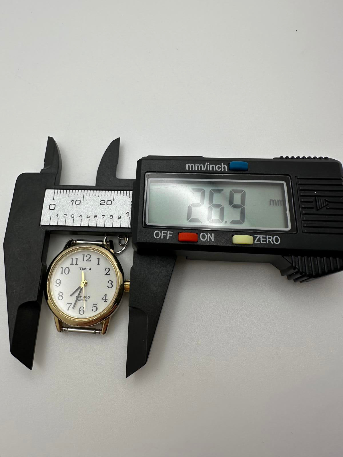 This is a clean and simple Timex women’s 27mm Indiglo quartz watch head in a gold-tone case with an easy-read white dial. It runs on a fresh CR1216 battery and keeps accurate time. The case is compact, lightweight, and great for anyone who prefers a clear, readable dial.
