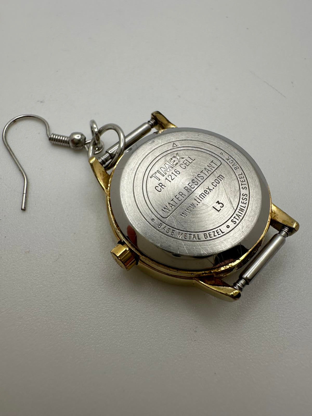 Originally a standard Timex WR30M watch head, this one comes with a removable earring hook attached by the previous owner. You can wear it as a pendant, charm, or remove the hook and install a strap again.
