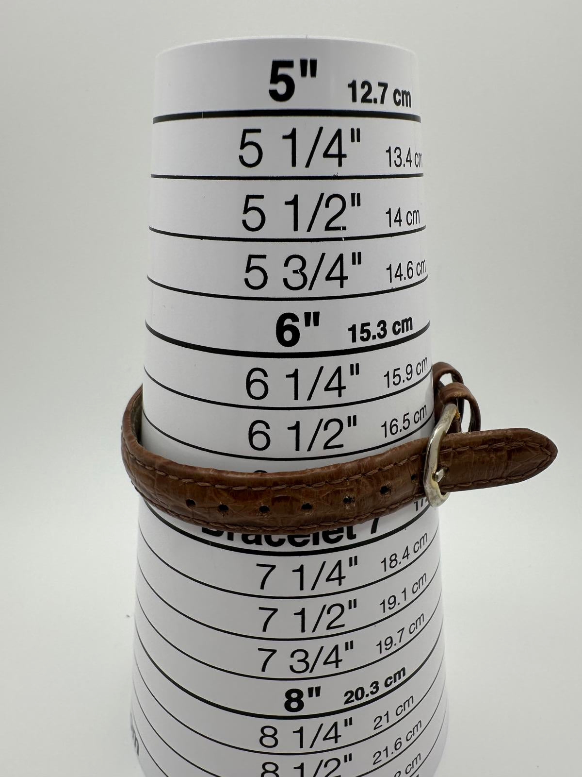 Case measures 18.5 mm across. Japan quartz movement. Stainless steel back.