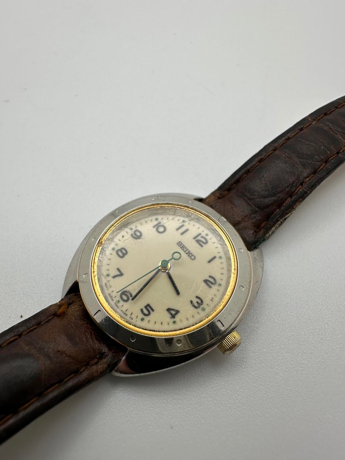 Vintage Seiko 28mm Cream Dial Quartz Watch w/ Pulsar Leather Strap