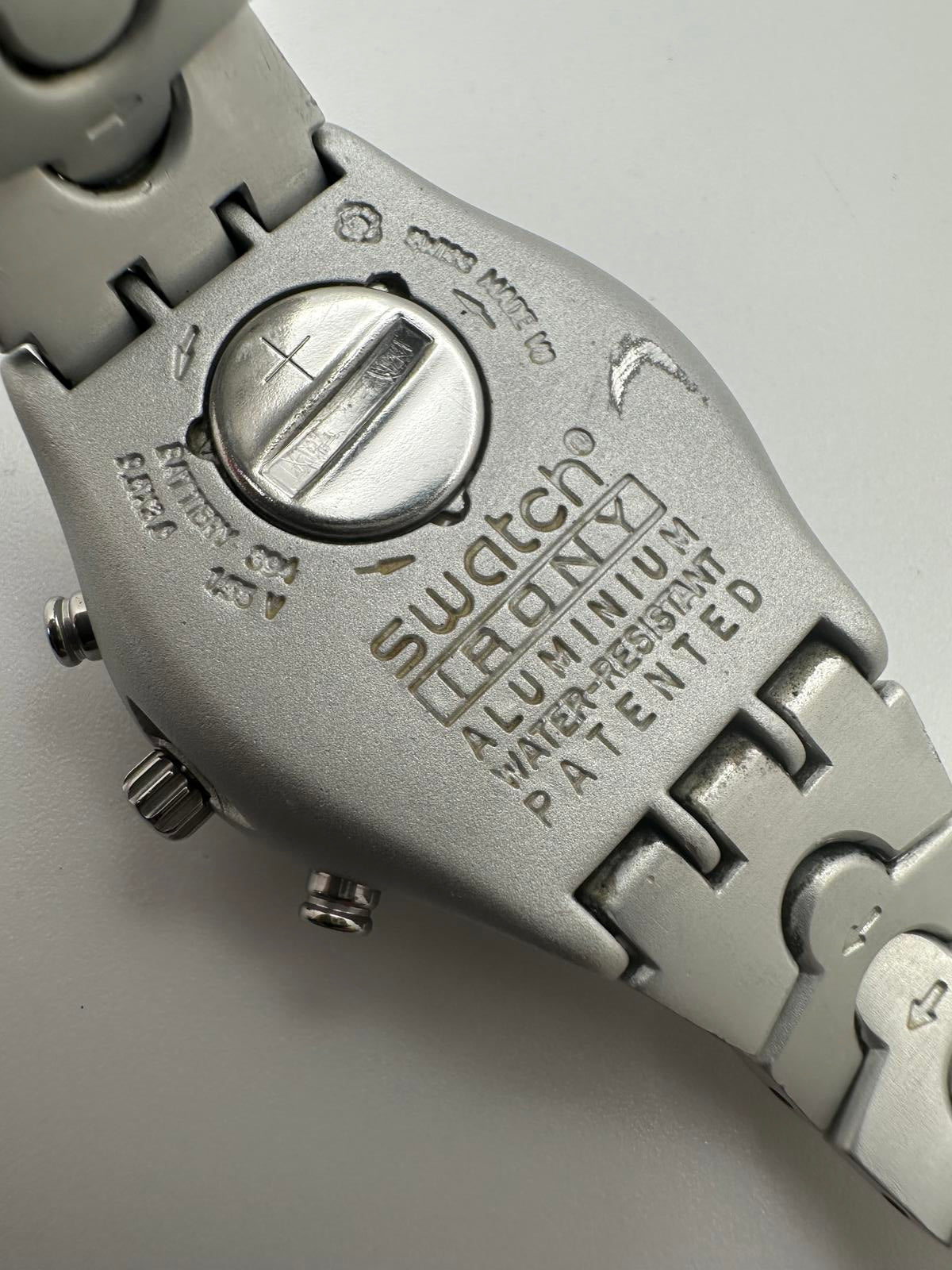 This is an authentic vintage Swatch chronograph known for durable design and everyday reliability. A great option for collectors or anyone looking for a classic Swatch metal sports watch.