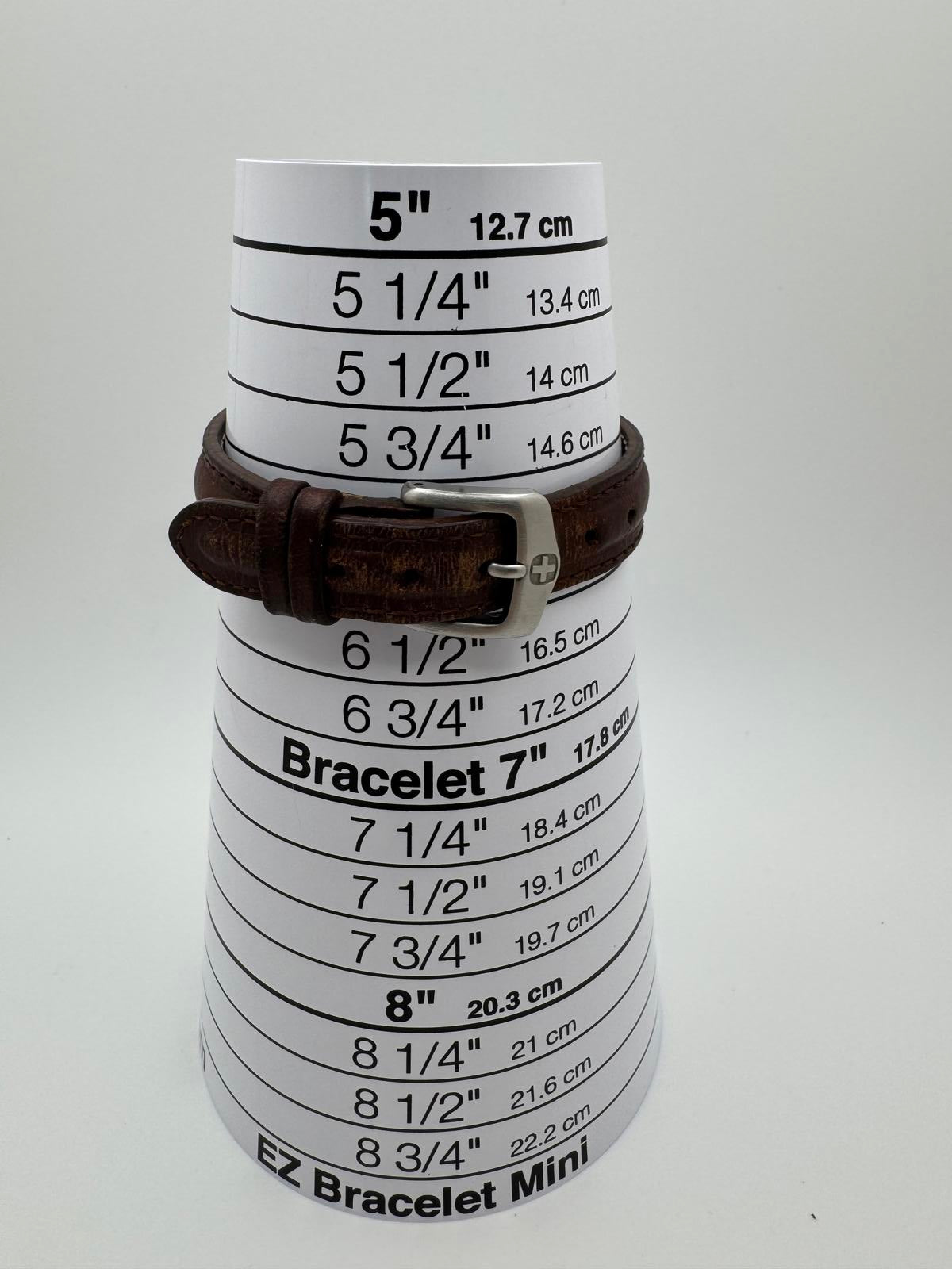 Band: Brown genuine leather strap with Wenger-signed buckle (shows wear but usable)