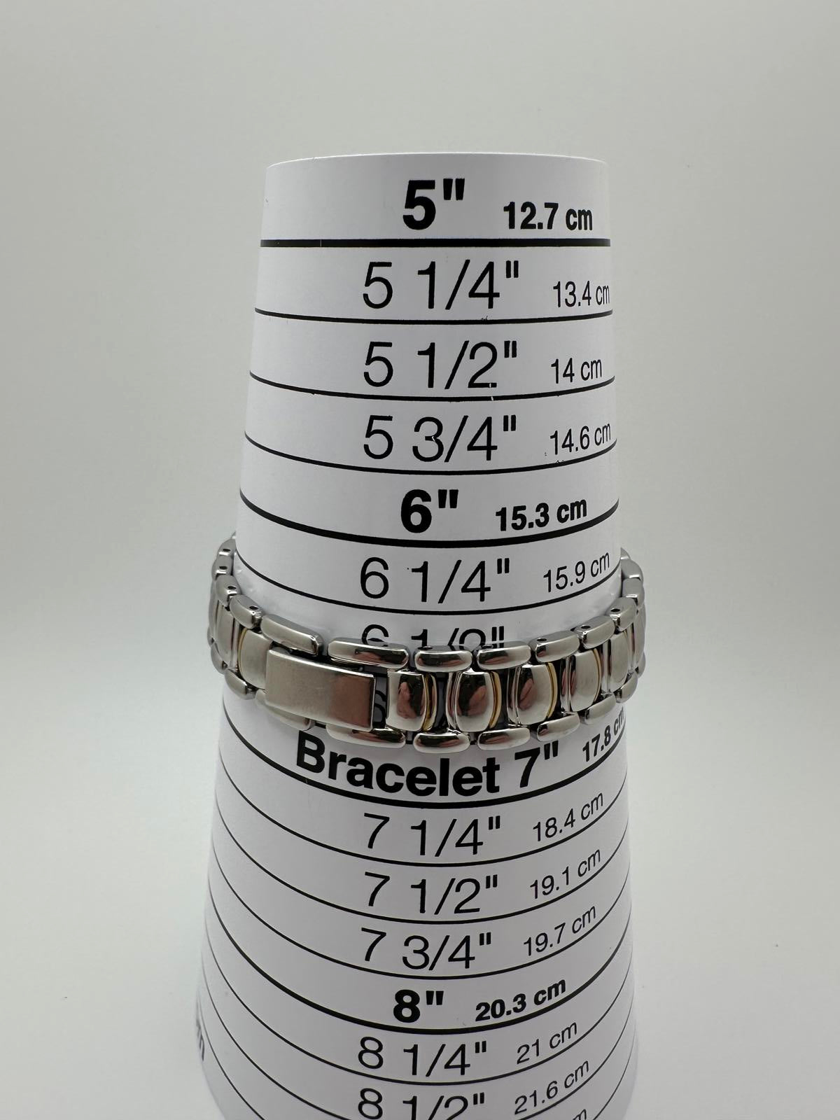A standout 22mm women’s Seiko quartz with a deep navy sunburst dial that shifts beautifully in the light. Gold Roman numerals at 12 and 6 give it a touch of elegance, paired with slim gold markers for a clean, modern look. The two-tone bracelet blends polished silver and gold links, giving you a versatile watch that pairs with anything—workwear, weekends, or dressy nights out.